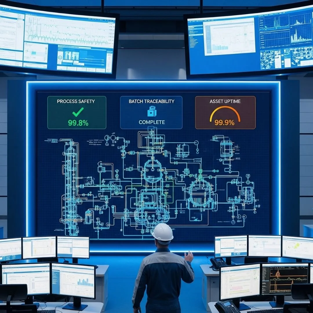 A segurança de processo (process safety) e a eficiência de ativos são os pilares da indústria Química. Nossa consultoria em Performance Industrial é especializada em maximizar o OEE de reatores, colunas de destilação e linhas de envase. Implementamos sistemas de Planejamento Avançado da Produção (APS) para otimizar o sequenciamento de bateladas, minimizando tempos de changeover e maximizando a capacidade produtiva. O foco é garantir uma operação estável, segura e com o menor custo de transformação possível.